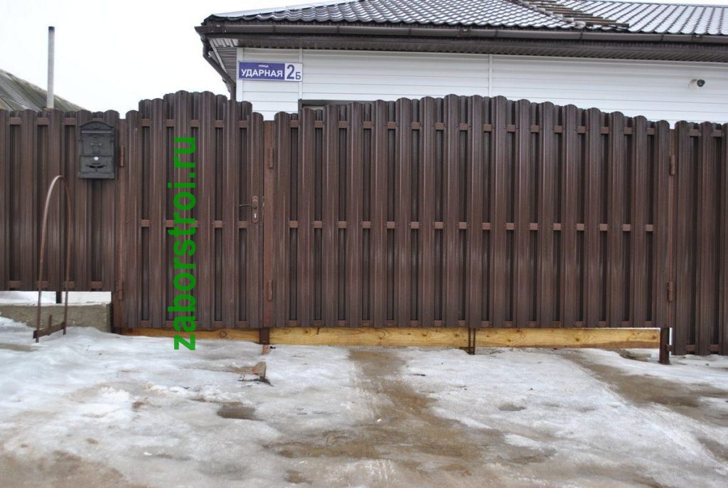 Ворота из евроштакетника распашные пример 3