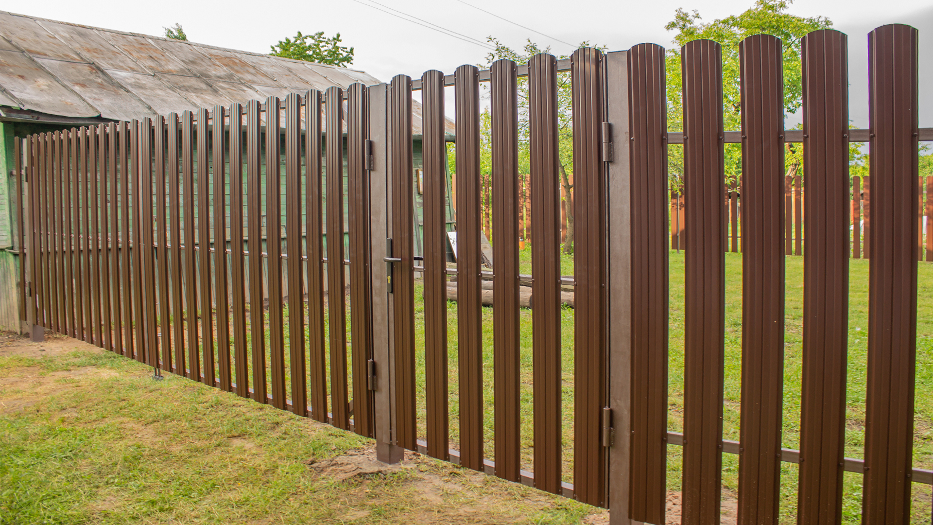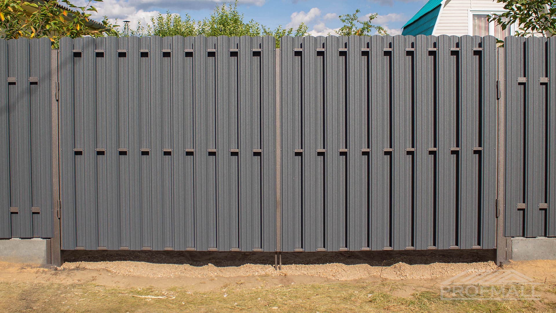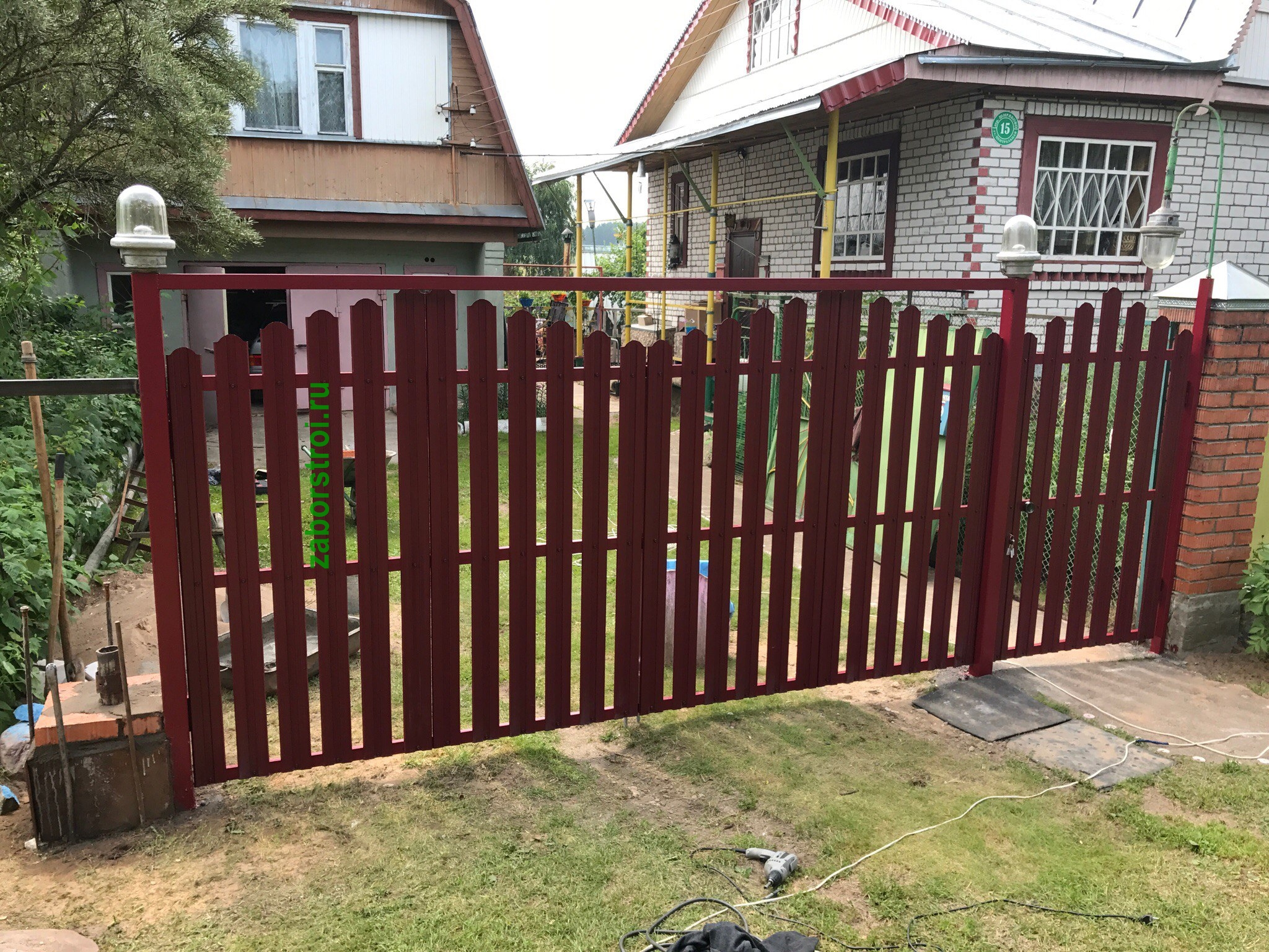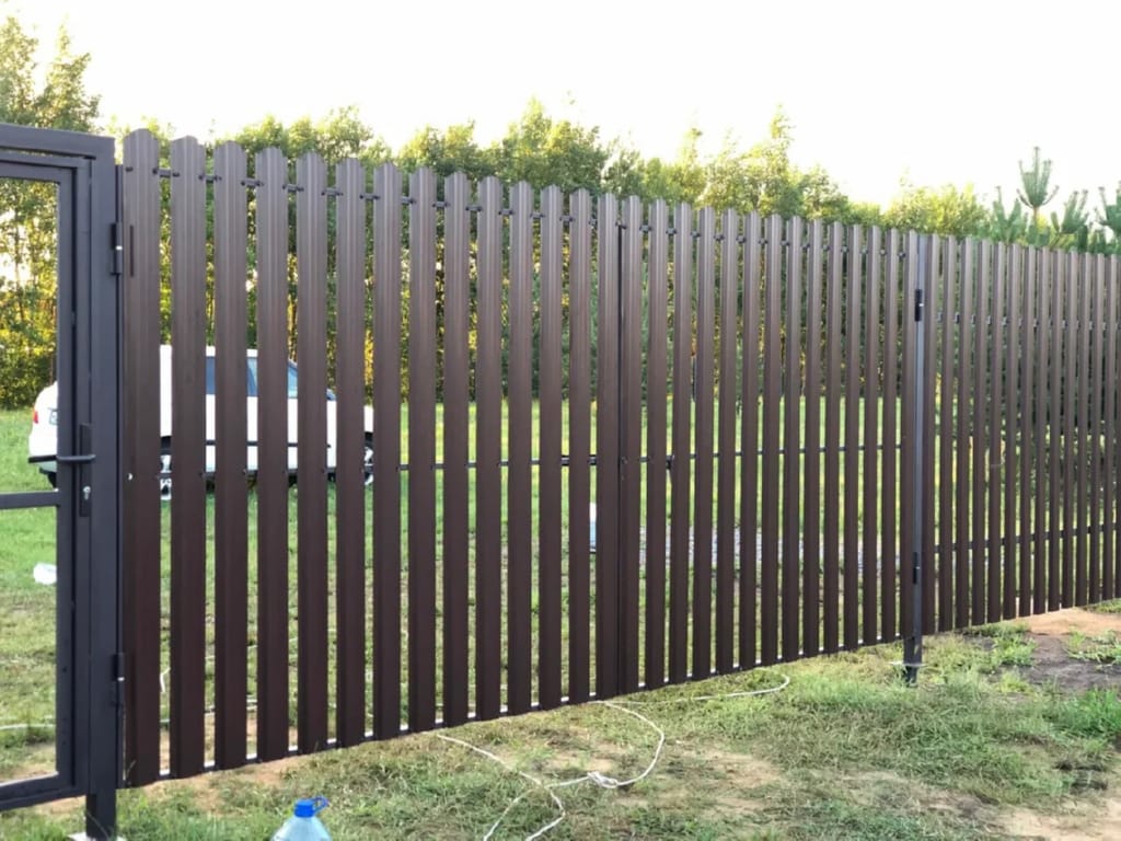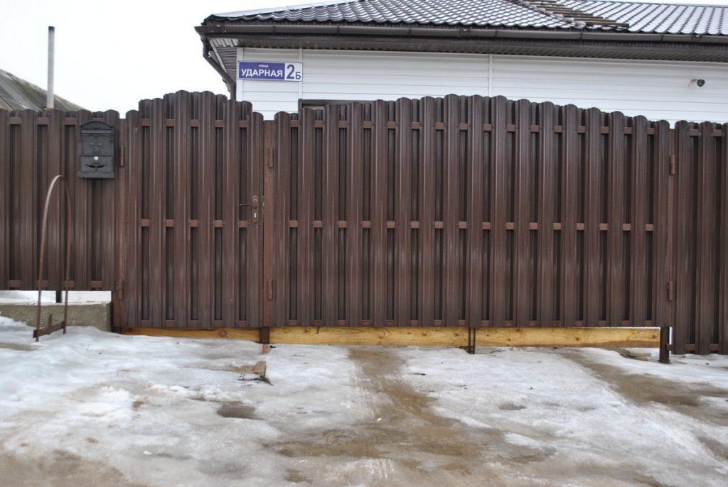 Ворота из евроштакетника распашные пример 7